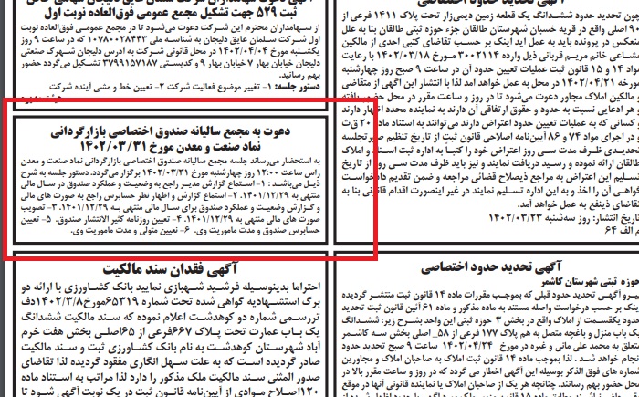 ثبت آگهی مجمع مورخ ۱۴۰۲/۰۳/۳۱